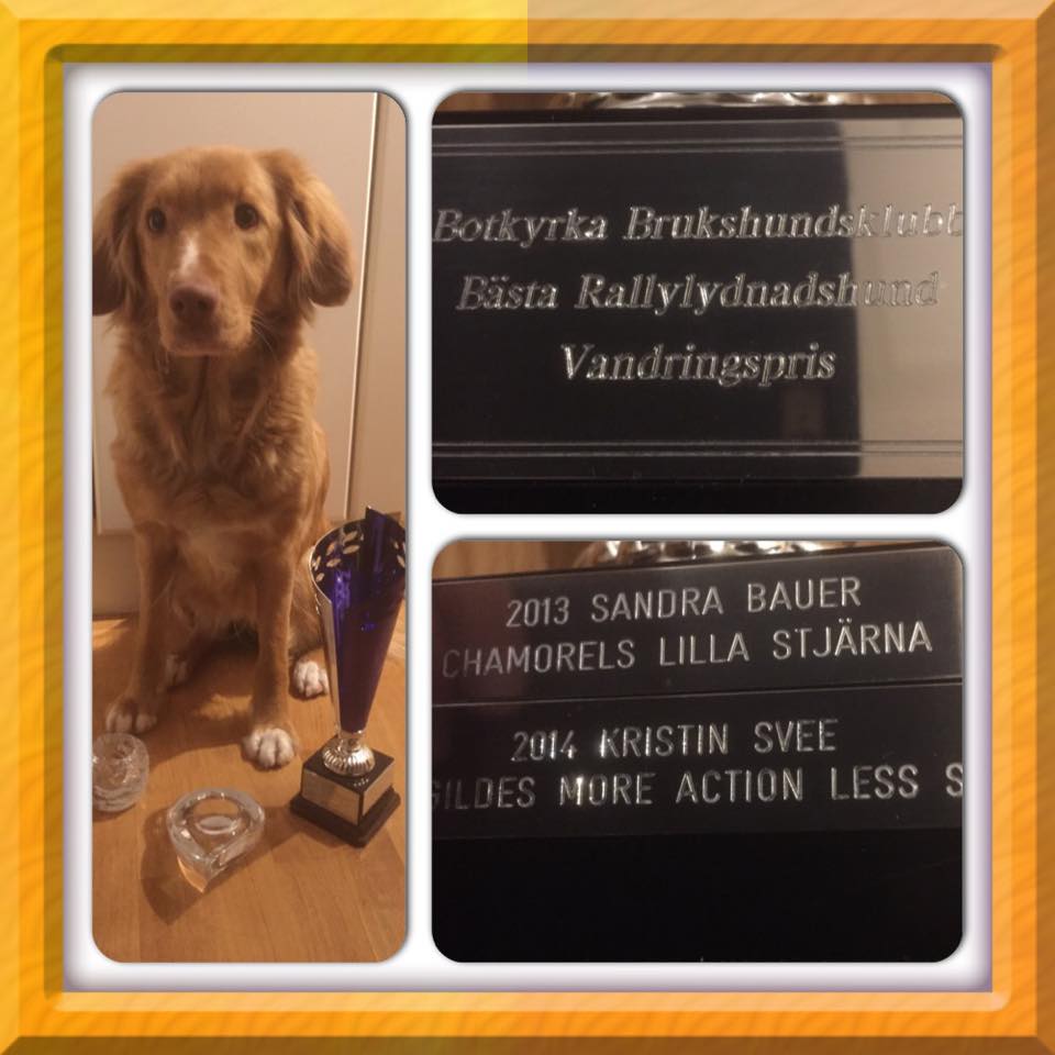Moira, Agildes More Action Less Sweets, har blivit untnämnd till Botkyrka BK:s Bästa Rallylydnadshund 2014! Stort grattis till era fin prestationer Kristin!